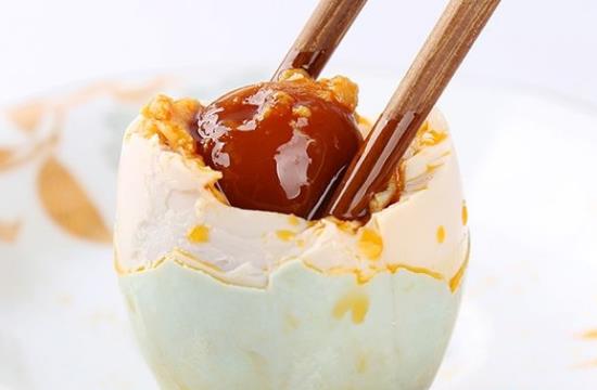 取花椒、桂皮、茴香、生姜、精鹽,用等量水煮沸20分鐘,倒入一瓷壇內,將洗凈的鴨蛋泡入,封嚴壇口,40天后即可煮食。這種鴨蛋香味濃郁,微咸可口。