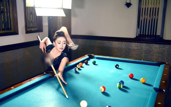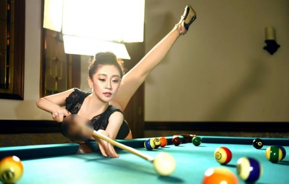 性感美女孫菲臺(tái)球桌上180度逆天一字馬 解鎖打球新姿勢(一)