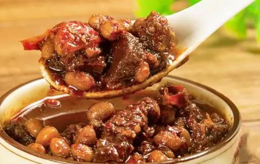 首先黃豆用涼水浸泡上三個小時以上,牛肉洗凈切成塊,把鍋燒熱了,放入牛肉炒干其中的水分,直至煸炒出油,鍋中多余的食用油全部倒出,再在鍋中放入八角、花椒,姜和香葉一起炒香,再在鍋中放入牛肉,加入老抽,給牛肉上顏色,然后再加上能夠淹沒牛肉的開水,食鹽、生抽以及白酒調味,白酒加得多一些,可以讓牛肉的味道更香,開大火將湯煮滾后就可以放入之前浸泡軟的黃豆,用大火煮上半個小時的時間,再轉成中火繼續燉,等到牛肉煮爛黃豆煮軟就可以了, 想要燉出美味、軟爛的牛肉,讓牛肉容易入口,要選擇牛肉中,結締組織豐富的一個部位,牛腩就是比較好的選擇,這個部位要比其他牛肉的部位更加軟爛一些,而且可以避免出現爛得失去形狀的情況產生,在燉牛肉的時候是不要焯水的,因為先焯水再放入鍋中燉,牛肉很容易出現口感變柴的情況,牛肉要在冷水中直接下鍋,隨著水溫不斷的升高,牛肉中的血水可以出現凝固析出的情況,可以讓牛肉的味道好, 在制作牛肉燉黃豆的時候,把一些茶葉用紗布包好,和牛肉一起燉煮,可以讓牛肉很容易燉熟燉爛,也不會影響到牛肉的味道, 燉牛肉的時候,可以加些姜,因為姜可以幫助調味去腥,還可以用來嫩化牛肉的口感,如果擔心煮出來的牛肉吃起來味道又老又硬,可以把新鮮的姜切成塊搗碎,放到袋子中,擠出中的姜汁后,直接把姜汁拌到牛肉里,完全攪拌均勻,讓牛肉均勻的沾上姜汁,在常溫下腌制一個小時,這樣能讓牛肉的香味更濃郁,而且可以避免生姜辛辣味的產生。