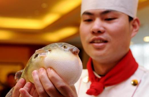 幾乎所有種類的河豚都含河豚毒素(TTX),它是一種神經(jīng)毒素,人食入豚毒0.5mg-3mg就能致死.毒素耐熱,100℃8小時(shí)都不被破壞,120℃1小時(shí)才能破壞,鹽腌、日曬亦均不能破壞毒素。毒素主要存在于河豚的性腺、肝臟、脾臟、眼睛、皮膚、血液等部位,卵巢和肝臟有劇毒,其次為腎臟、血液、眼睛、鰓和皮膚,精巢和肉多為弱毒或無(wú)毒。在熟制河豚時(shí),一定要嚴(yán)格細(xì)心地除去河豚的內(nèi)臟、眼睛,剔去魚(yú)腮,剝?nèi)ヴ~(yú)皮,去凈筋血,用清水反復(fù)洗凈。
