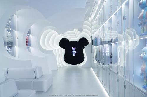 通過燈光和特別材質打造的BE@RBRICK門廊,源源不斷流動的燈光與店內層層遞進的BE@RBRICK輪廓,讓客人體驗到無盡的藝術震撼。