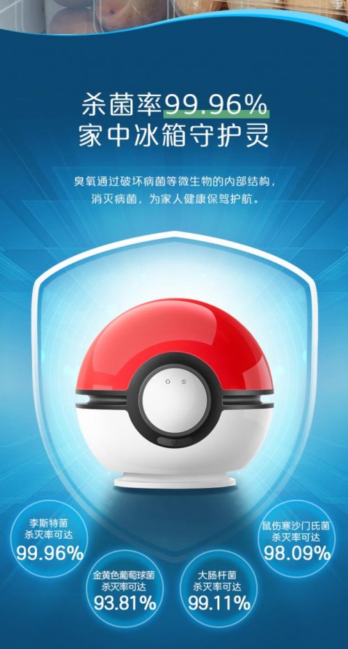 美的這款寶可夢聯(lián)名款除味器精靈球,不僅有著突破次元壁的可愛外觀,除菌除臭的能力也同樣出圈。其搭載的臭氧模塊可以通過釋放臭氧(O₃)來對冰箱內部進行除菌除味。臭氧作為地球大氣中存在的一種微量氣體,具有極強的氧化性和殺菌性能,能夠迅速破壞細菌、病毒等微生物的內部結構,對多種致病微生物都有高效殺滅的作用。所以利用臭氧來殺菌除臭,有著覆蓋面廣、除菌效率高,且無殘留、無污染的優(yōu)點,非常適合存儲食物的冰箱環(huán)境。