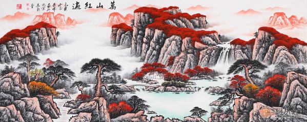 鴻運風(fēng)水聚寶盆 蔣偉山水畫作品《萬山紅遍》 作品來源:易從網(wǎng)