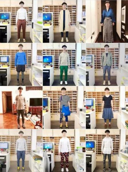 當(dāng)時(shí)他剛從日本旅行歸來,就穿了條日本買的男裝裙去參加,講“附著在衣著上的社會定式”。講座主題和他的穿著相得益彰,在講座上,他說:“我很喜歡用我一身打扮去挑戰(zhàn)學(xué)生思維和學(xué)院體制。”