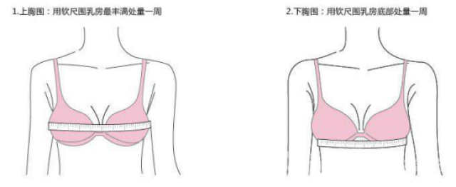 平時我們最關心的三圍中,胸圍——指的是上胸圍,如下圖左側:平行于地面,繞體一周(包括乳頭)的長度;而底圍(下胸圍)如下圖右側所示:于胸部下方結界位置,平行繞體一周的長度。上下胸圍都可以用厘米或者英寸量(注:1 英寸 =2.54 厘米)。