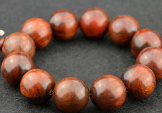 小葉紫檀手串顏色比較深沉,自帶淡淡的香味,有鎮心安神的作用,這種的小葉紫檀佩戴時間久了,會有特別美麗的包漿效果,看上去晶瑩剔透的。