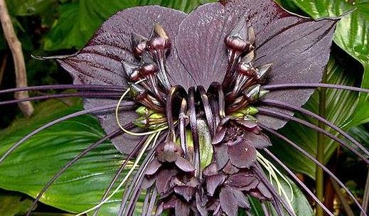 老虎須(Taccachantrieri)通常又叫蝙蝠花(CHINESEBLACKBATFLOWERS),在溫暖氣候下生長茂盛。這種幽靈般植物主要分布在中南亞。由於不討喜的外型,在馬來西亞被視為“不吉祥的花卉”,它們晃來晃去的果實看起來就像是倒掛著的蝙蝠一樣。