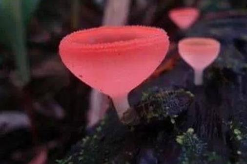 橘黃刺杯菌是Sarcoscyphaceae杯真菌的屬,其中的成員可能會在世界熱帶和亞熱帶地區發現。就像是一個發著橘色光的酒杯,在幽暗的森林中有種很浪漫的感覺。葡萄美酒夜光杯!