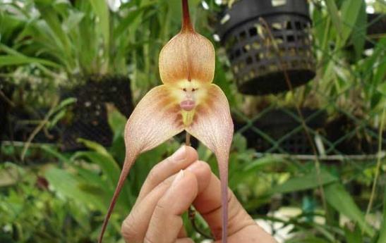 猴面小龍蘭(學名:Draculasimia(Luer)Luer),主要生長在厄瓜多爾東南部和秘魯的霧林中,有人工栽培。因長著猴臉被形象地稱之為“猴臉蘭花”。該花能夠在任何季節開花,所散發出的氣味與成熟的橘子類似。有兩個怪異特征,即兩根長刺和兩個長萼。