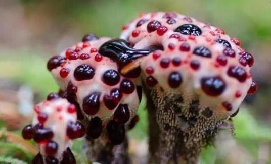 出血齒菌也被稱之為“惡魔牙齒”或者“草莓加奶油”,并不具有毒性。乍一看,人們可能認為這種蘑菇上面血紅色的液體是森林動物濺到白色菌蓋上的血液。如果仔細觀察你就會發現,紅色液體是從蘑菇上的小孔滲出的。這種蘑菇在西北太平洋地區更為常見,通常生活在針葉樹林。