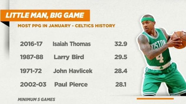 2015-2016賽季,小托馬斯迎來爆發(fā)場均22.2分3.0個籃板6.2次助攻。2016年1月29日,伊塞亞·托馬斯入選東部替補陣容,職業(yè)生涯首次入選全明星,并成為NBA歷史上自卡爾文·墨菲之后身高最矮的全明星球員。而在2016-2017賽季,小托馬斯每當?shù)谒墓?jié)就總能穩(wěn)定發(fā)揮,在NBA統(tǒng)計中,小托馬斯在第四節(jié)打分效率跟分數(shù),穩(wěn)居第一!因此被球迷送其“末節(jié)之王”的稱號。當然他當?shù)闷疬@個名號,每當球隊在第四節(jié)打脫力之時,他總能挺身而出。2017賽季也順理成章的第二次入選全明星,并且率隊取得了東部第一的戰(zhàn)績,成功打進東決,與騎士大戰(zhàn)5場,球迷稱之為“地表最強175cm”。(騎士在東部全部碾壓4-0)