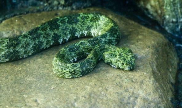 基伍樹蝰蛇分布于非洲中部,包括剛果民主共和國、烏干達西南部和肯尼亞西部等地區(qū)。其標準產(chǎn)地是位于剛果民主共和國北基伍省的“Lutunguru”。雄性的基伍樹蝰體型最長能達73厘米,雌性體型則較短,約長至58厘米,軀體布滿了厚長的鱗片,遠看就像長滿了以鱗片織就的剛硬的“毛發(fā)“確實很美。曾經(jīng)有美國富豪為求得此蛇出價100萬美元,為的是做成標本在家中觀賞。