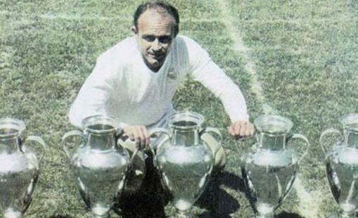 阿爾弗雷多·迪·斯蒂法諾,出生于阿根廷布宜諾斯艾利斯,后加入西班牙國籍,前職業(yè)足球運動員。1945年,斯蒂法諾職業(yè)生涯開始于阿根廷河床隊,1947年以6場6球的表現(xiàn)幫助阿根廷國家隊奪得美洲杯冠軍,1949年轉(zhuǎn)會至哥倫比亞波哥大百萬富翁,1953年加盟皇家馬德里足球俱樂部,1956-1960年帶領(lǐng)皇馬連續(xù)五年奪得歐洲冠軍杯冠軍,并在五次歐冠決賽中均有進球,二次獲得歐冠最佳射手,八次奪得西班牙足球甲級聯(lián)賽冠軍,五次獲得西甲最佳射手,斯蒂法諾共代表皇馬正式比賽出場396場打進308球。