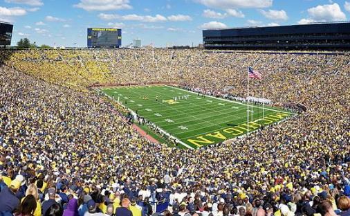 密歇根體育場是全美最大的體育場,2013年更是創(chuàng)下了全美觀眾人數(shù)的新紀錄。在一場密西根狼獾隊與宿敵“圣母大學戰(zhàn)斗愛爾蘭人(Notre Dame Fighting Irish)”的比賽中,全場觀眾人數(shù)達到了115109人。