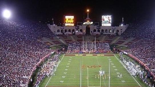 洛杉磯紀念體育場,是位于美國加利福尼亞州洛杉磯大學公園內的一座大型室外體育場,是世界上唯一作為兩屆奧林匹克運動會(分別是1932年及1984年奧運會)主場館的體育場。上世紀八九十年代,它曾作為洛杉磯突襲者隊(LA Raiders)的主場,也因此被廣大球迷所熟知。突襲者隊球迷們所創辦的“黑洞”組織,也是NFL歷史上極具影響力的球迷組織。