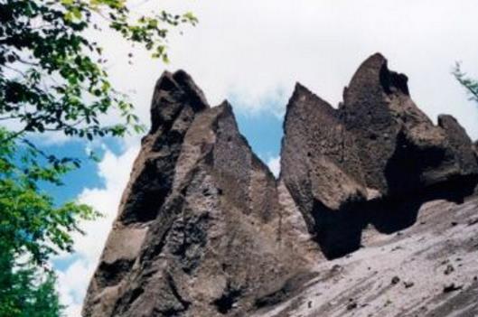 峽谷浮石林,又名景崗山。位于長白山山門東南6公里處,坐落在火山爆發,地殼變動后形成的一條大裂谷中,是游雙目峰、中朝界碑、園池、金日成釣魯臺的必經之地。峽谷浮石林發源于長白山梯云峰西側,大小梯子河匯合后稱梯子河。梯子河向西流入錦江,系頭道松花江的二級支流。河床寬度僅為2米,深度卻有幾米至幾十米。兩壁陡峭,水流湍急,河水清冽甘甜,因該河河床由玄武巖構成,橫斷面呈下寬上窄的梯形,又因發源地河床陡峭,如層層階梯,故稱為梯子河。