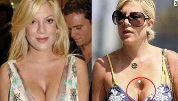 《驚聲尖叫》中的女演員托瑞·斯培林幾次隆胸之后,胸前的一對寶一天比一天激增無形,時至今日斯培林胸內的手術填充物明顯已經變了形。