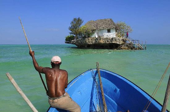 一塊孤立于海邊的巖石,經歷海水的侵蝕,突兀而奇特的矗立在海邊。在坦桑尼亞桑給巴爾島海灘上有一家?guī)r石餐館,緊靠海灘,隨潮漲潮落而顯山露水。巖石餐廳給游人提供午餐和晚餐,可以同時容納四十五人用餐。餐廳主要供應從海邊巖石附近捕獲的各類海鮮。另外,人們還可以在餐廳外漫步欣賞印度洋奇幻的景色。自餐廳開張以來,來這里用餐的食客絡繹不絕。巖石餐廳是一個神奇的地方,這里的用餐經歷一定會讓人永生難忘。