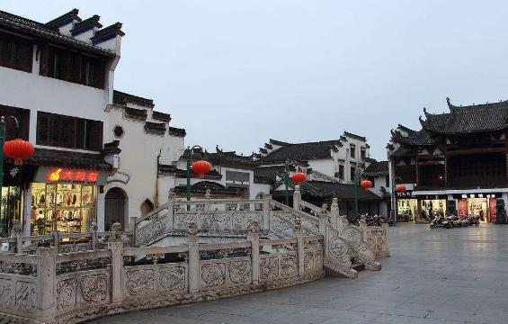 徽州古城——坐落在國家歷史文化名城歙縣縣城徽城鎮(zhèn)中心,千年徽州府治所在地,主體建筑有仁和樓、得月樓、茶樓、惠風(fēng)石坊、徽?qǐng)@第一樓、過街樓、古戲樓等以及鑲嵌其間的古色古香商品住宅樓百余間,是展示和體現(xiàn)徽州文化的重要實(shí)物建筑。徽州“一府六縣”格局始于唐大歷五年(770年)。自從晉太康元年(280后年)新安郡轄黟、歙、海寧、黎陽、遂安、始新六縣以后,歷有變動(dòng)。南朝宋大明八年(464年),黎陽縣并入海寧縣,新安郡轄歙、黟、海寧、遂安和始新五縣。
