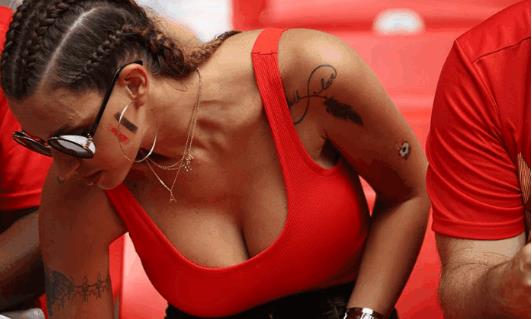 看臺上這位球迷可謂身材傲人,雙臂上的紋身倒是成為了亮點,畢竟女球迷還是很少有紋身的,看臉上的國旗應該就是比利時隊的球迷,比利時隊目前打進8強,也是奪冠熱門的有力爭奪者。