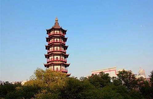 繩金塔座落在南昌市西湖區繩金塔街東側,原古城進賢門外,始建于唐天佑年間(公園904~907年),相傳建塔前異僧惟一掘地得鐵函一只,內有金繩四匝,古劍三把(分別刻有“驅風”、“鎮火”、“降蛟”字樣)還有金瓶一個,盛有舍利子三百粒,繩金塔因此而得名。繩金塔歷經滄桑,屢興屢毀。據史料記載,歷史上繩金塔多次建筑。