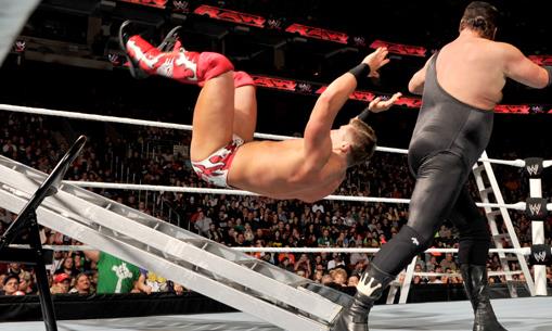 泰德斯奧尼爾真的很悲催,力量非常大的一位選手,但是在WWE的地位一直不高,剛上擂臺,就被圣盾兩兄弟,羅曼雷恩斯和迪安安布羅斯淘汰
