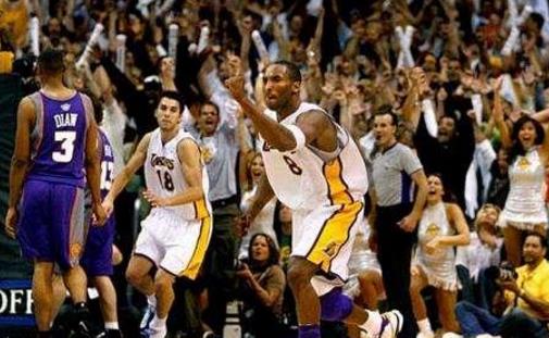 2006年季后賽,湖人迎戰太陽,太陽陣中兵強馬壯,而湖人只有科比一人苦苦支撐,但科比仍憑借著一己之力雙絕殺贏下了比賽,科比常規時間絕殺球扳平進加時,加時賽結束又運球至罰球線右側,急停而起,球進鐘鳴再次絕殺太陽贏的比賽。憑借著科比神一樣的發揮,湖人將系列賽比分打至3-1,雖然最終遺憾落敗,但科比絕殺終成經典。