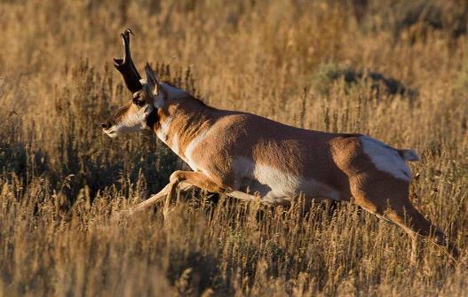 叉角羚(學名:Antilocapraamericana):在角的中部角鞘有向前伸的分枝,故名。體型中等,體長1-1.5米,尾長7.5-10厘米,肩高81-104厘米,成體重36-60千克,雌體比雄體校叉角羚善游泳,夏季組成小群活動,冬季則集結成上百只的大群。為尋找食物和水源,一年中常進行幾次遷移。性機警,視覺敏銳,能看到數千米外的物體。遇險時,臀部的白色毛能立起,向同伴告警。分布于北美洲。