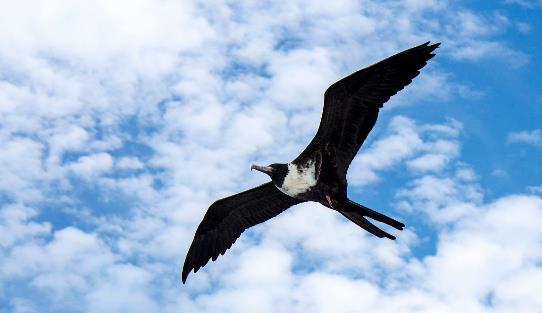 軍艦鳥(學名:Fregata)是鵜形目軍艦鳥科5種大型海鳥的通稱。具極細長的翅及長而深的叉形尾,翅展長約可達2.3米,一般雄性成鳥的體羽全黑,雌性成鳥的下部則為明顯白色。軍艦鳥能以每小時153公里的速度飛行,它們使用這種速度從其他海洋鳥類那里偷食物。有趣的是,軍艦鳥的大部分壽命都是在空中度過的,它們很少接觸地面。