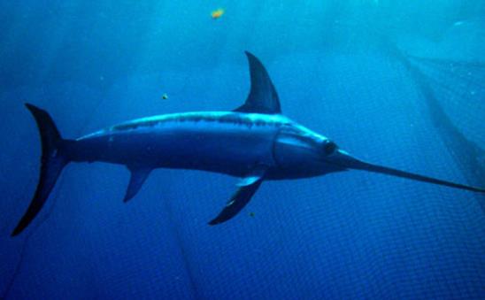 劍魚(學名:Xiphiasgladius),亦稱“箭魚”。是世界上熱帶、亞熱帶海洋中一種常見魚類,因其上頜向前延伸呈劍狀而得名。擁有典型的流線型身體,體表光滑,上頜長而尖,背部的鰭較小,嘴較扁平,無腮和腹鰭。在英國倫敦博物館,保存著一塊被劍魚長劍刺穿的厚達50cm的木制船底。