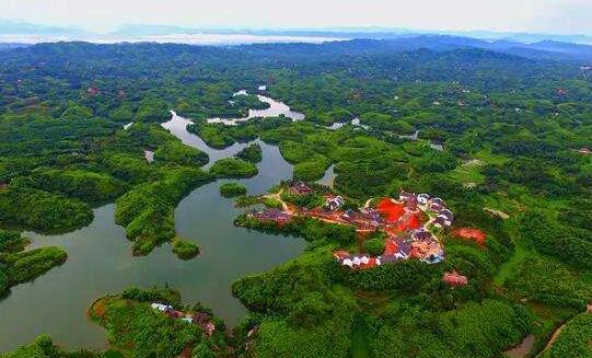 鳳凰湖旅游區擁有水域面積157萬平方米,森林覆蓋率89%。湖中大小島嶼10余座,湖泊九彎十八拐,由48條汊河密布而成,被譽為“西蜀玉珠”。