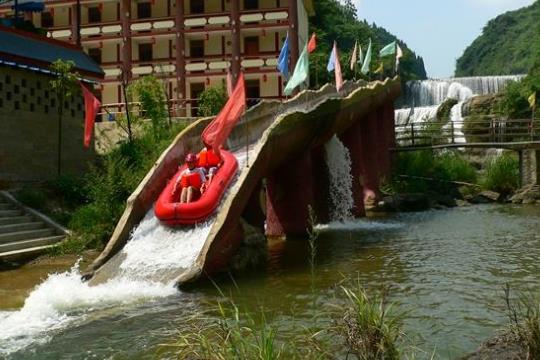 貴陽(yáng)修文桃源河魔幻漂流位于修文縣六屯鄉(xiāng)境內(nèi)的桃源河峽谷生態(tài)旅游區(qū),距貴陽(yáng)市區(qū)40公里。該區(qū)素有“人間仙境”、“世外桃源”之美稱(chēng)。峽谷內(nèi)有十里桃花源、情人泉、犀牛潭瀑布、銀灘瀑布、三道響大瀑布等自然景觀。桃源河魔幻漂流開(kāi)創(chuàng)了中國(guó)漂流之先河,在峽谷內(nèi)架起了空中滑道和開(kāi)辟了魔幻洞,讓游客在感受驚險(xiǎn)刺激的漂流外,有魔幻般的全新體驗(yàn)。