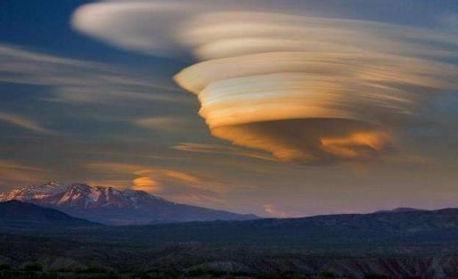 莢狀云,又稱飛碟云,是指一種狀如飛碟云形,以透鏡形狀出現(xiàn)在高空,通常形成于順風(fēng)的右側(cè)。常被誤認(rèn)為外星飛船或不明飛行物。它是一種自然天氣現(xiàn)象,經(jīng)常在濕潤(rùn)空氣經(jīng)過(guò)山脈上空時(shí)出現(xiàn)。如果空氣在經(jīng)過(guò)山脈上空時(shí)溫度下降,空氣中的水分就會(huì)凝結(jié)成莢狀云。由于它們不同尋常的形狀,因此它們經(jīng)常被誤認(rèn)為是UFO。