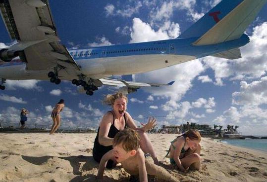 圣馬丁島是位于邁阿密東南部的度假勝地,為法國和荷蘭兩個(gè)國家分治。位于島上的朱莉安娜機(jī)場的位置條件非常極端:在跑道的一端,起飛需要快速上升以避開陡峭的多山地形。而在跑道的另一端,降落的飛機(jī)會(huì)直接滑行到海邊。降落跑道非常靠近酒店,飛機(jī)會(huì)從海灘游客頭上2、3米的空中飛過。