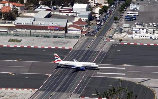 直布羅陀機(jī)場本身就有悖常理,最不符合邏輯的地方就是一條四車道公路直接從跑道中間穿過。每次有飛機(jī)飛入,機(jī)場工作人員就會(huì)將障礙物放在公路上,以此來阻止交通。這樣一來就會(huì)產(chǎn)生交通堵塞,尤其是軍方在直布羅陀有活動(dòng)的時(shí)候。