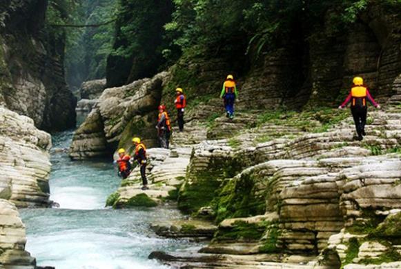 神農溪,發源于神農架主峰,流經湖北巴東縣境內,由北向南穿行于深山峽谷之中,至巫峽口東匯入長江。神農溪是一條典型的峽谷溪流,兩岸山峰緊束,絕壁峭聳,溪水在刀削般的峽壁間沖撞,水道曲折,湍急的溪流中有險灘、長灘、彎灘、淺灘六十余處。水道雖狹急卻清淺,漂流極富刺激而又安全。神農溪流經三個風景各異的峽谷--棉竹峽、鸚鵡峽、龍昌洞峽。兩岸風光奇美,峽谷中少有開闊地,最狹處兩岸相距僅7米。船行峽中,如穿幽巷重門。