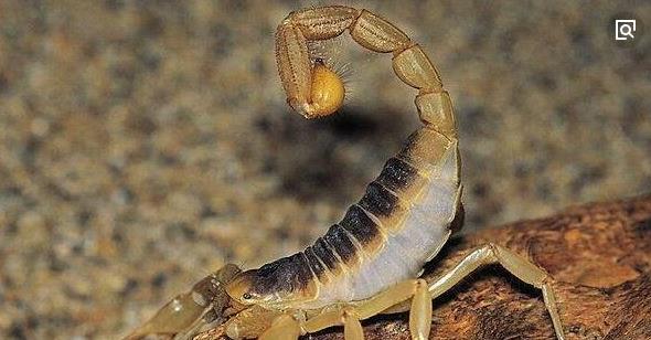 地球上毒性最強的蝎子——巴勒斯坦毒蝎(以色列金蝎)(Palestinian scorpion),生活在以色列和遠東的其他一些地方。是地球上毒性最強的蝎子,它那長長的螯的末尾,是帶有很多毒液的螯針,趁你不注意刺你一下,螯針釋放出來的強大毒液讓你極度疼痛,抽搐,癱瘓,甚至心跳停止或呼吸衰竭。
