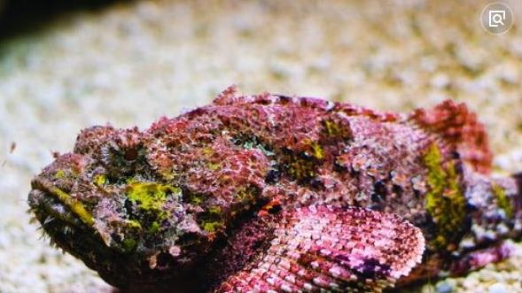 毒鲉棲身于澳大利亞沿海水域。石頭魚,貌不驚人,身長只有30厘米左右的它,就愛躲在海底或巖礁下,將自己偽裝成一塊不起眼的石頭,即使你站在它的身旁,它也一動不動,讓你發現不了。要是不留意踩著了它,那它就毫不客氣地立刻反擊,向外發射出致命劇毒。它的脊背上那12-14根像針一樣銳利的背刺會輕而易舉地穿透你的鞋底刺入腳掌,使你很快中毒,并一直處于劇烈的疼痛中,直到死亡!