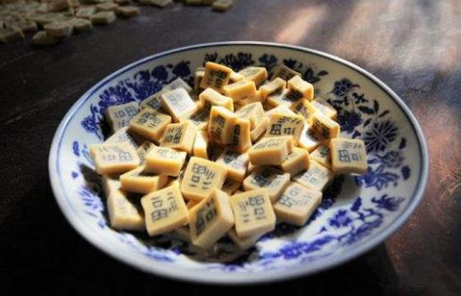 嵌字豆糖,是一種被稱為“說文解字”的古徽州傳統(tǒng)食品。豆味兒、芝麻味兒和微甜的糖味兒讓人唇齒留香,每塊糖中都藏著一個吉祥如意的漢字,糖中有字,字里含意,意間帶甜。這就是傳說中的“咬文嚼字”了吧!