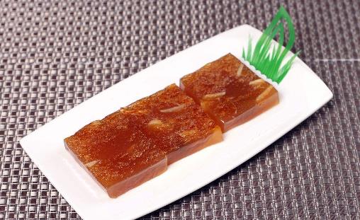 馬蹄糕是一種廣東省,福建省福州及閩南地區(qū)的傳統(tǒng)甜點小吃。相傳源于唐代,以糖水拌合荸薺粉蒸制而成。荸薺,粵語別稱馬蹄,故名。其色茶黃,呈半透明,可折而不裂,撅而不斷,軟、滑、爽、韌兼?zhèn),味極香甜。馬蹄糕有“馬到功成、年年升高”的寓意。咬上一口馬蹄糕,清涼爽滑。制作完成的馬蹄糕,無論是加熱還是冰鎮(zhèn),口感味道依舊不變,這就是神奇之處!顏色呈茶黃,折而不斷,爽滑彈牙,馬蹄脆甜,這就是馬蹄糕!