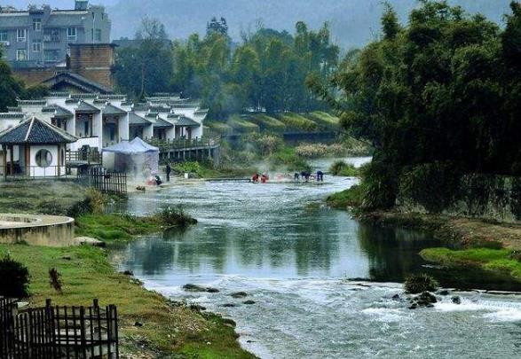 郴州市汝城溫泉福泉山莊為熱水溫泉,位于湘、粵、贛三省交界的熱水鎮。福泉山莊是集住宿、餐飲、娛樂、溫泉水療、商務會議于一體,與湘南民居建筑群為主流風格的大型熱泉天體療養度假福地。山莊占地130畝,總建筑面積14000平方米,療養泡池達33個,擁有舒適別致的各類客房86間(套),依山傍水、風光宜人,福泉四周萬畝竹海,豪放大氣,山莊格調,婉約溫馨,熱泉水出自地表深層、潔凈如煉,系我國南方水溫最高,流量最大,水質最好,熱田面積最寬的天然溫泉。