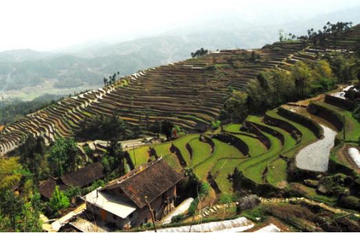 湖南省新化縣的紫鵲界梯田,氣勢恢宏,景觀奇特,文化內涵豐厚,具有很高的旅游價值。紫鵲界屬于雪峰山中部的奉家山體系,最高峰海拔1585.2m。以紫鵲界梯田為中心,共有梯田5300多hm2,紫鵲界集中連片的梯田就有1300hm2以上,從海拔500m到1200m之間,共500余級,梯田坡度一般在30度左右,陡的達到50度以上。這么大面積、大坡度的梯田,竟然沒有一口山塘,全靠天然灌溉系統,可稱為天下奇觀,加之內涵豐富的梯田文化,紫鵲界梯田具有很高的科學文化和游覽價值。1.1悠久的歷史文化。