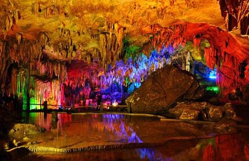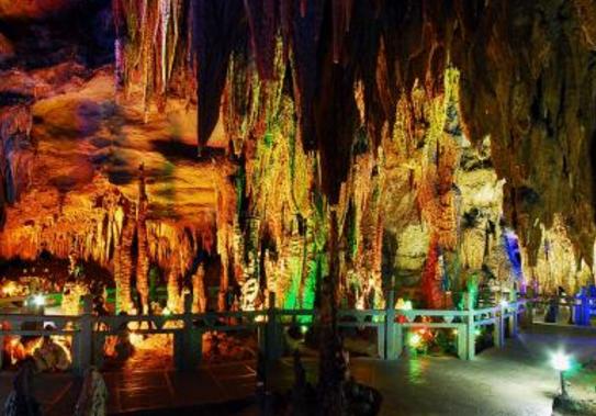 梅山龍宮與大熊山的九龍峰、九龍池一脈相通。相傳黃帝登熊山,將靈毓蔥籠的九龍峰點化成九條青龍,沿九股清泉游入可通五湖四海的九龍池。九條青龍游入資水,被梅山油溪石竹灣的風光靈氣所吸引,高興得在水中游、云中飛、洞中舞,久久不愿離去,一住就是幾千年。新化古稱梅山后人便把這個巖洞叫做梅山龍宮。梅山龍宮為層樓空間結構,洞體造型奇特,組合多樣,水陸皆備,共有四層洞穴、八層洞道。洞道全長2276.1米。其中地下河長854.5米,上層旱洞長1076.4米,崩塌大廳長225.2米,支洞長120.0米。