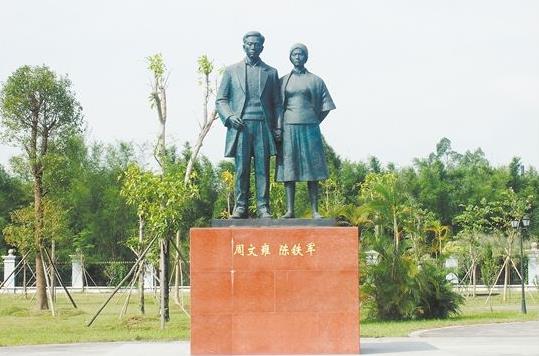 周文雍陳鐵軍烈士陵園,前身為烈士紀念碑。1957年,廣東省政府在周文雍故鄉---開平市百合鎮茅岡村委會揚桃山興建“周文雍陳鐵軍烈士紀念碑”,以敬仰先烈,教育后人。于1983年重修,1999年改擴建為烈士陵園,2012年起投資2800萬元逐步完善了各項配套設施。陵園占地面積2萬平方米,建筑面積1649平方米,悼念廣場3708平方米,綠化面積7828平方米。陵園坐南向北,北靠325國道,建有牌坊、紀念碑、紀念館、紀念亭、塑像、悼念廣場以及零散烈士墓集中保護區等紀念設施。