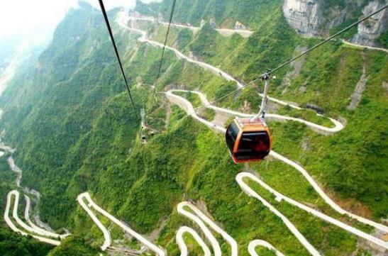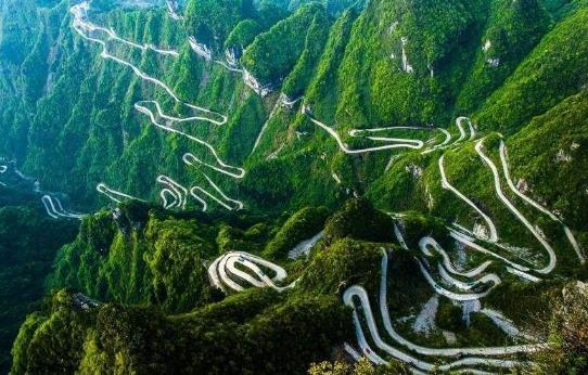被稱為通天大道的盤山公路共計99彎,似玉帶環繞,彎彎緊連,層層疊起,依山籍壁,直沖云霄,“天下第一公路奇觀”橫空出世。天門山是張家界永定區海拔最高的山,距城區僅8公里,因自然奇觀天門洞而得名。天門山古稱嵩梁山,又名云夢山、方壺山,是張家界最早載入史冊的名山,主峰1518.6米,1992年7月被批準為國家森林公園。 2005年5月,天門山盤山公路竣工通車。被稱為通天大道的盤山公路共計99彎,似玉帶環繞,彎彎緊連,層層疊起,依山籍壁,直沖云霄,“天下第一公路奇觀”橫空出世。