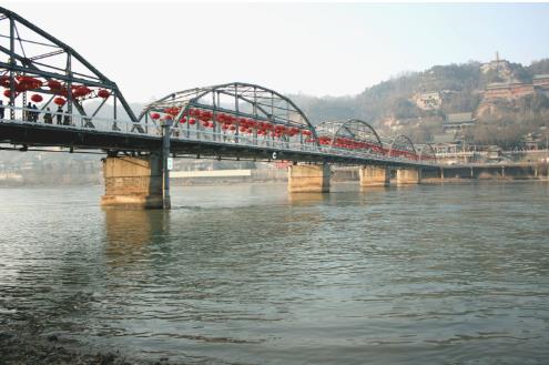 蘭州黃河鐵橋俗稱“中山鐵橋”、“中山橋”,位于濱河路中段北側,白塔山下。黃河鐵橋不僅是蘭州歷史悠久的古橋,也是5464公里黃河上第一座真正意義上的橋梁,因而被稱為“天下黃河第一橋”。中山鐵橋的前身是明洪武5年(1372年),宋國公馮勝在蘭州城西七里處建的浮橋;至明洪武9年(1376年),衛(wèi)國公鄧愈移浮橋至西10里處,稱“鎮(zhèn)遠橋”;明洪武18年(1385年),蘭州衛(wèi)指揮楊廉將浮橋移至今日位置,至今遺存重10噸,長5.8米的鑄鐵橋柱“將軍柱”三根。