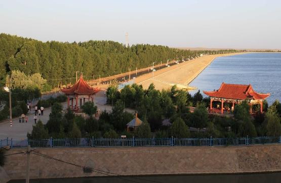 紅崖山水庫是亞洲最大的沙漠水庫,是沙鄉(xiāng)人民的生命工程,大漠深處的璀璨明珠,四海賓朋的游覽勝地。紅崖山水庫海拔1750米,相對高度350米,遠(yuǎn)遠(yuǎn)望去,山色赤紅,故名紅崖山。1958年在這里建成一座馳名中外的沙漠水庫,設(shè)計庫容1.27億立方米,水庫面積30平方公里。這樣大的水庫,只有西面依紅崖山而建,其它三面都是人工所筑,而且又修建在沙漠中,這在全國甚至全世界都是罕見的,是亞洲最大的人工沙漠水庫,七九年被中央電視臺列為“中華之最”,被人們譽為“瀚海明珠”。