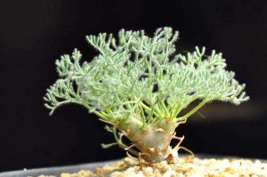 白皮月界,隸屬于牻牛兒苗科鳳嘴葵屬,產于非洲的納米比亞。白皮月界的根比蘿卜要硬,比樹根要軟,表皮像蠟質一般,就像非洲的“面包樹”一樣,儲存著大量的水分和養料。白皮月界與黑皮月界外形相近,區別是白皮月界的根比黑皮月界更細,白皮月界的塊根更粗大。而且白皮的花瓣不具有黑皮花瓣基部的紅色斑紋。白皮月界是鳳嘴葵屬中非常具有代表性的一個物種,也是該屬內產區范圍最狹窄的物種,目前在中國大陸地區市場上流通量少。
