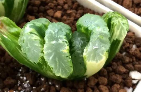 霓虹燈玉露是玉露的一個經典品種,以大而透亮的窗、光滑呈紫黑色的葉片,以及色彩斑斕的錦斑而受到許多多肉植物玩家的喜愛,是許多愛好者夢寐以求的品種。霓虹燈玉露是南非原始種大衛玉露Haworthia davidii和經人工選育而成的冰燈玉露的雜交的錦斑變異種。數量稀少,生長緩慢。數量稀少,生長緩慢。目前一棵霓虹燈玉露的成株價格已高達4萬元以上,一棵好的植株價格甚至能在20萬元以上。但是幼株價格較低。