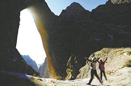 阿圖什天門位于阿圖什市上阿圖什鄉西天山南脈,級景區,距阿圖什市75公里。最近被美國《探險》雜志確定為全球25條最線探險線路之一。據史料記載:1932年美國記者夏合拉格歐在當地維吾爾向導烏斯曼阿洪的陪同下曾到過此地。1947年英國探險家希普頓曾游獵于此。“天門”呈“∩”字型,寬約100米,高約500余米,鬼斧神工,天造地設,無法丈量的厚度讓人驚奇,是游人和探險者夢寐以求的樂園。